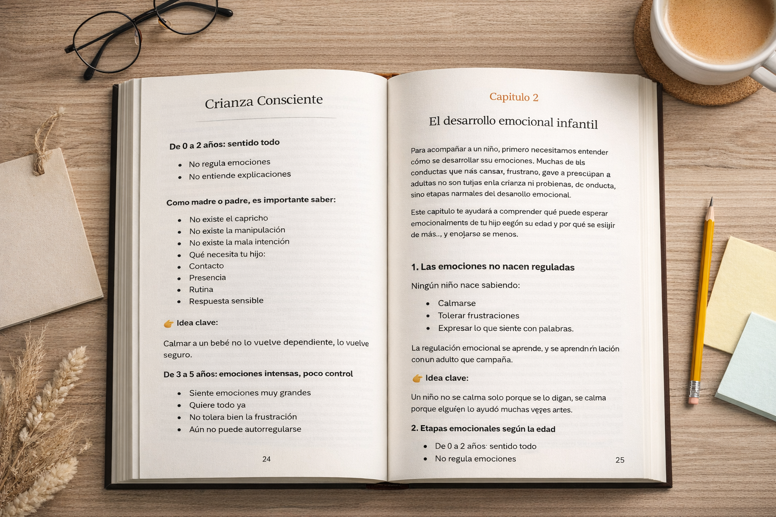 La Guía de Crianza Consciente es un material profundo y transformador que invita a madres y padres a mirarse primero, para poder criar desde la conciencia y no desde el piloto automático.